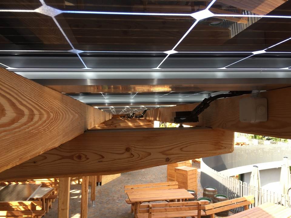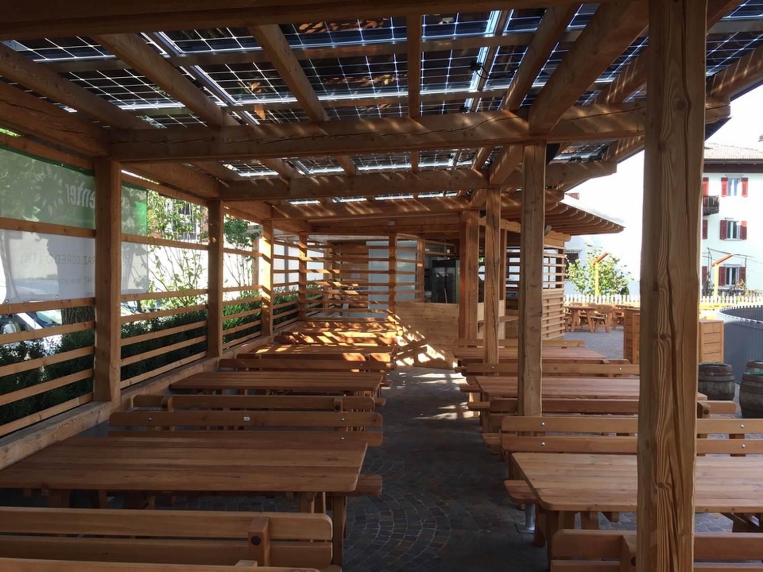 L’impianto fotovoltaico del Ristorante Pizzeria Giardino di Cles (TN) è stato realizzato su una pergola esistente in legno. Il committente era alla ricerca di una soluzione in grado di soddisfare il connubio perfetto tra progetto esteticamente elegante e a basso impatto, qualità dei prodotti e l’esigenza di creare una zona ristorante esterna coperta.